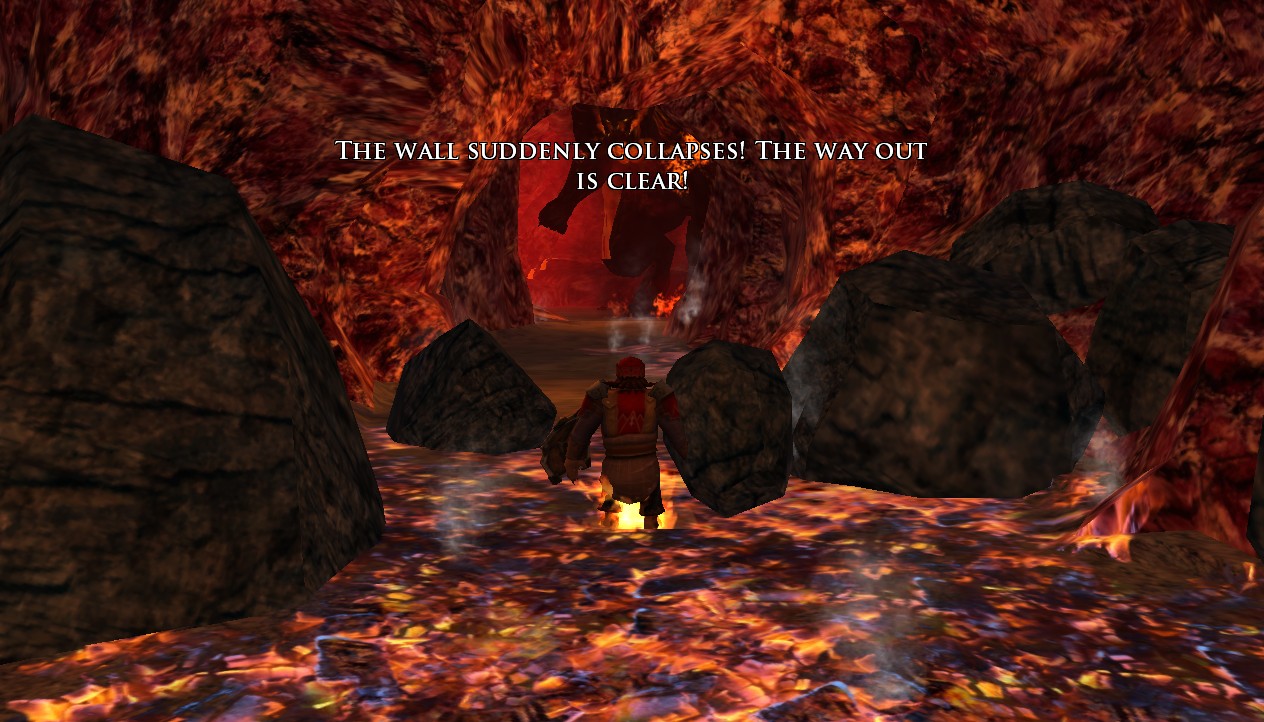 But suddenly the stomping of those great feet disturbs the collapsed rock further, and flight is possible!
