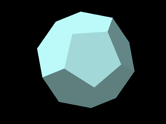 The dodecahedron has twelve pentagonal faces and is reciprocal to the icosahedron. |