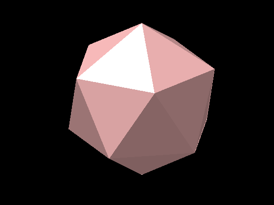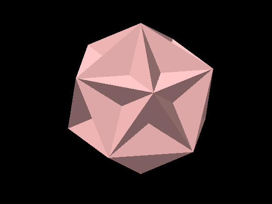 The great icosahedron has twenty triangular faces just as the ordinary icosahedron. However they meet at each vertex in a star-pentagonal arrangement. |