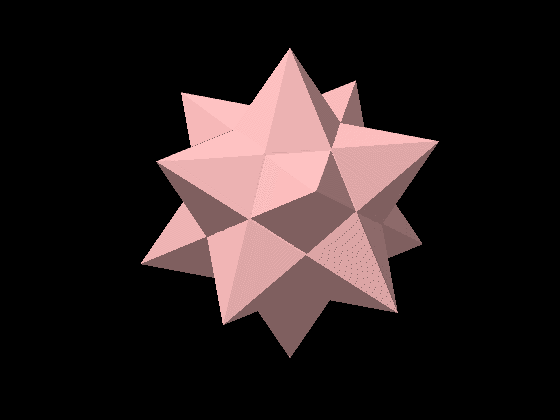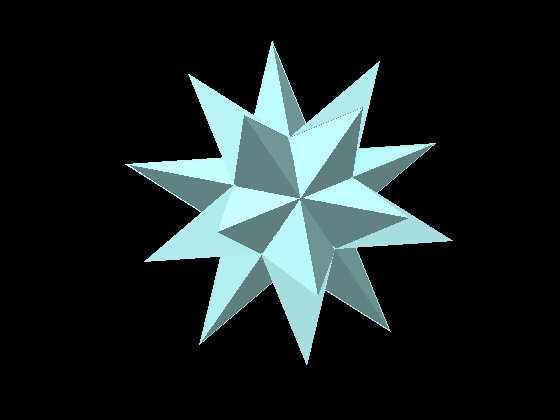 The small stellated dodecahedron has twelve star-pentagons; five meeting at each vertex. |